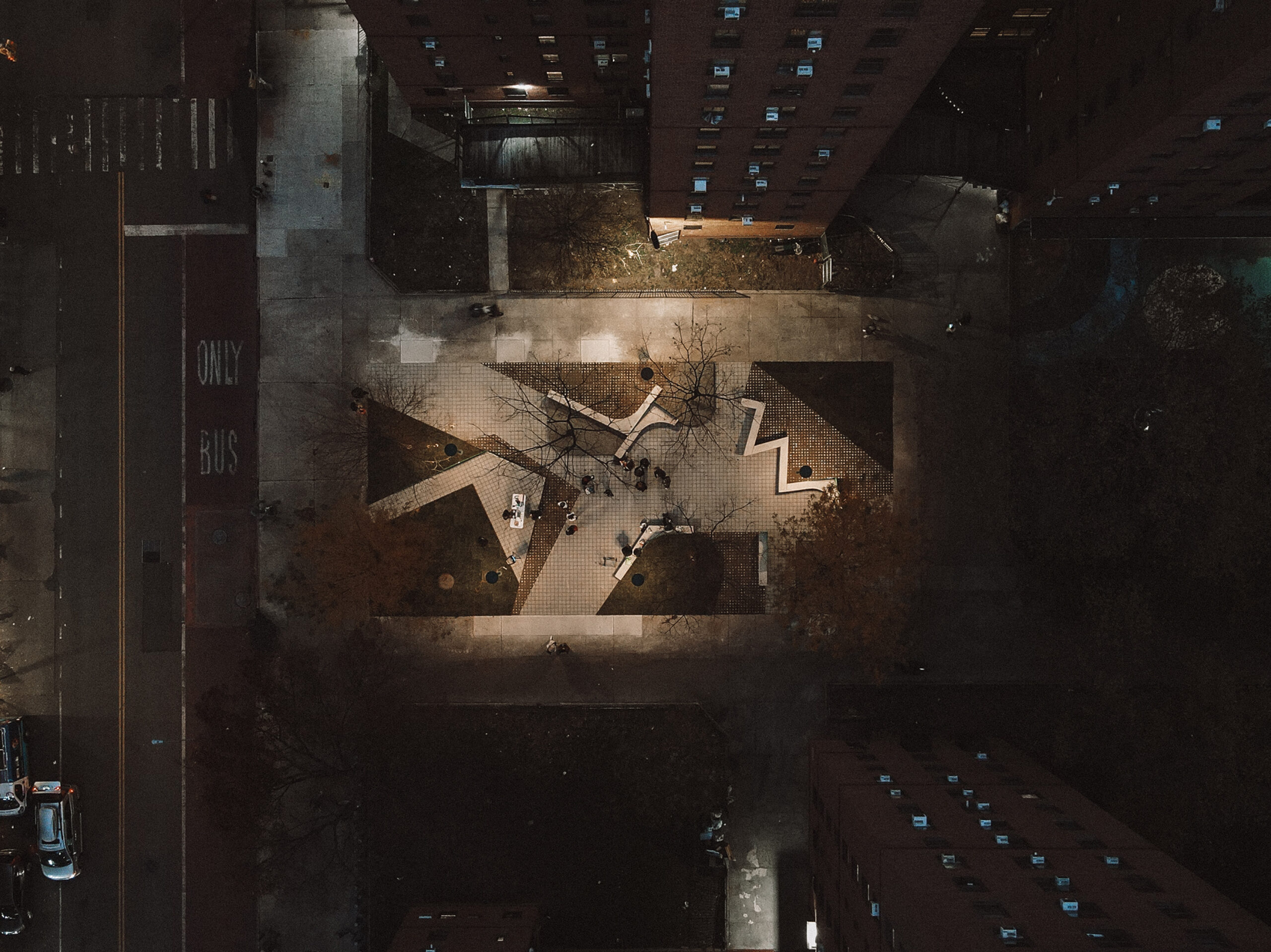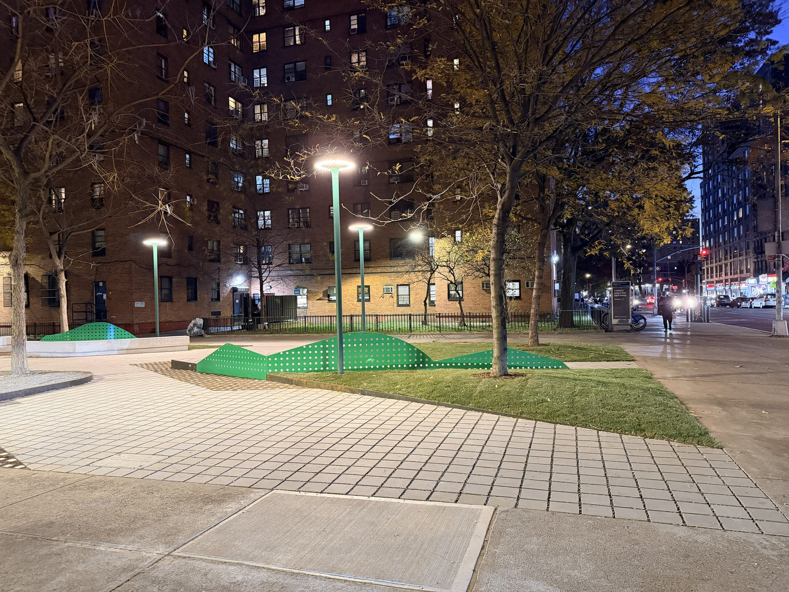 Across New York City, fenced lawns in public housing developments are common. Though labeled as green space, they often create physical and psychological barriers, signaling exclusion rather than care. At this site, a 4,000-square-foot lawn sat between a brightly illuminated avenue and nearly unlit residential pathways. The project set out to remove both the fence and the fear associated with the space, using light to support everyday use without overwhelming the environment.